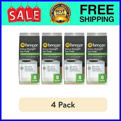 (4 pack)Purina Tidy Cats Breeze Multi-Cat Extra Strength Ion Cat Litter Box Pads