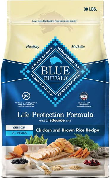 Blue Buffalo Senior Life Chicken & Brown Rice Recipe Dry Dog Food, 30-lb bag