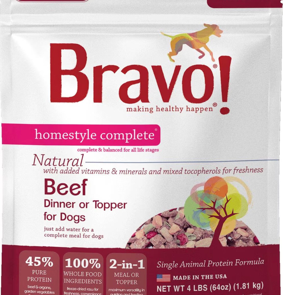 Bravo! Homestyle Complete Beef Dinner Grain-Free Freeze-Dried Dog Food 4lb