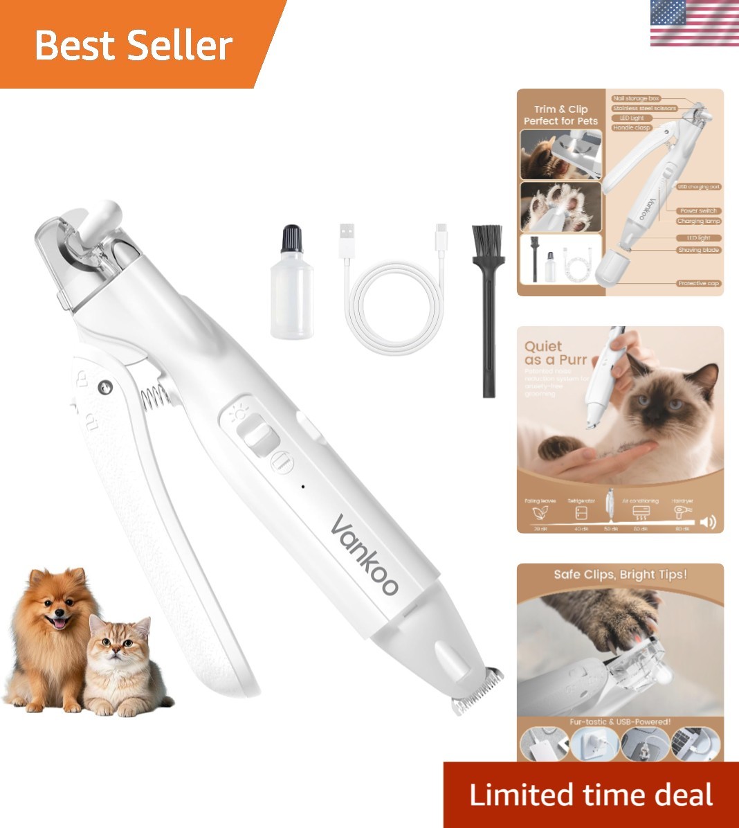 Gentle Handheld Pet Groomer with Illuminated Nail Clippers – Rechargeable